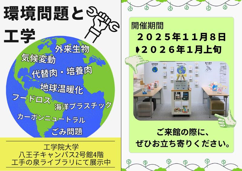 この環境問題について皆さんに書籍から知ってもらうべく、八王子ライブラリでは“環境問題”と”解決への取り組み”の二つのコーナーに分けて展示を行っています。