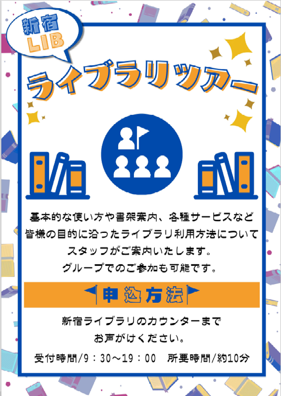 申込方法:新宿ライブラリのカウンターまでお声がけください。(所要時間:約10分)